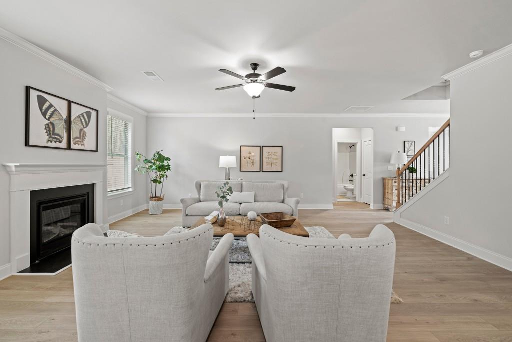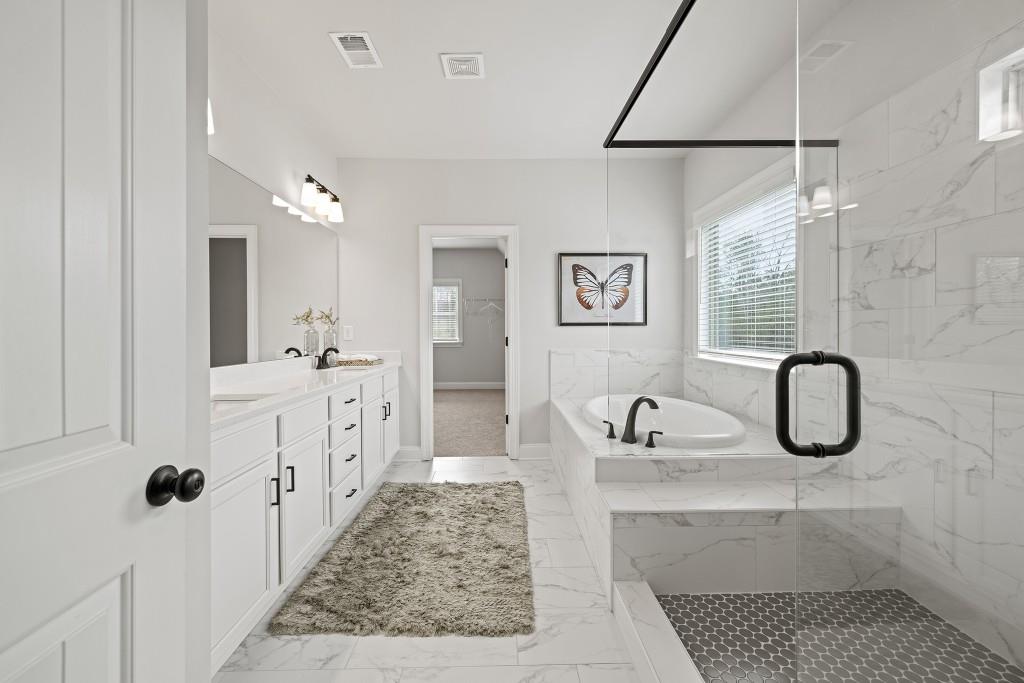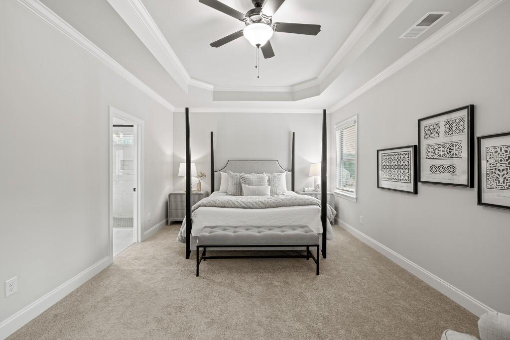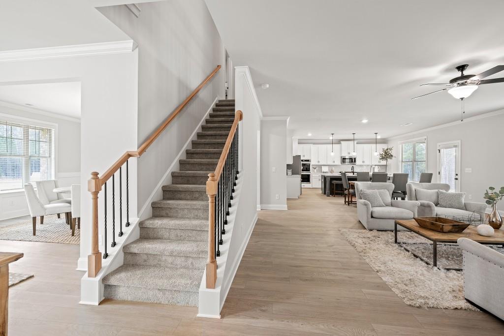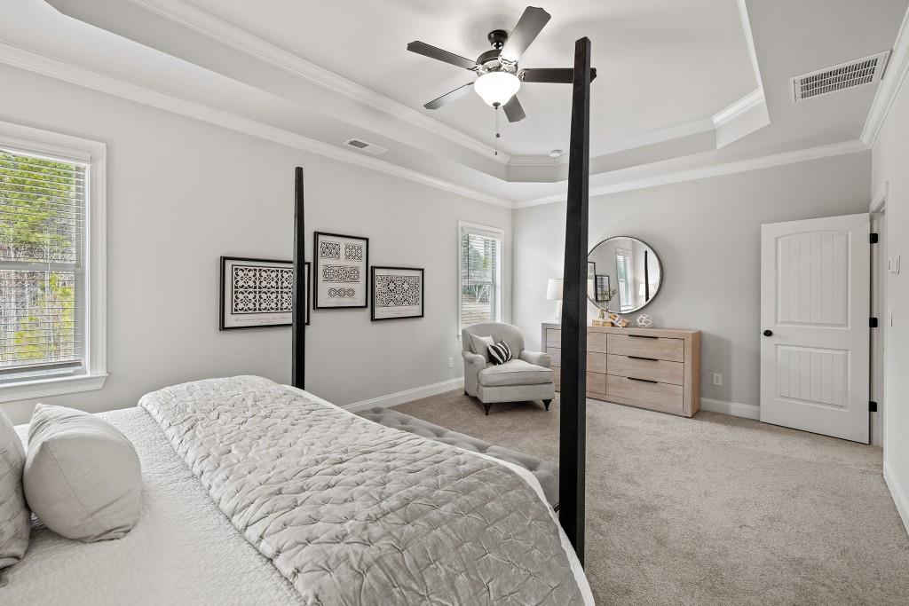 The Grayson Plan built by Stephen Elliott Homes. Quick Move-In! Welcome to your dream home Stephen Elliott's newest community Ruby Creek Estates. With only 25 homesites and oversized 1 acre lots to choose from. This beautiful new construction community is located in the Top Fulton Co School district WestLake High School and 20 minutes from Hartsfield Jackson Airport and Downtown Atlanta. This stunning 5-bedroom 4 bath The Grayson Plan will feature Luxury LVP Flooring throughout the first floor excluding bedroom on main, LVP stair treads and a bright interior with soaring ceilings. The home will include 42' wall cabinetry with cove crown and stainless-steel appliances with the double ovens and cook top that add a touch of elegance to the heart of the home and perfectly set up to prepare meals for entertaining, a Fireplace in the oversized Family room, a breakfast area perfect for family and friends gatherings, and a Separate Dining Room with wainscoating. The primary room has the Tile shower with a 5" drop-in tub with tile deck, a large walk-in closet, A Media Room to congregate to watch the big games or movies, 3rd car garage, and a Large Covered Extended Patio. Ask about our $20,000 anyway seller incentive with preferred lender. Home can close in Febuary 2026.